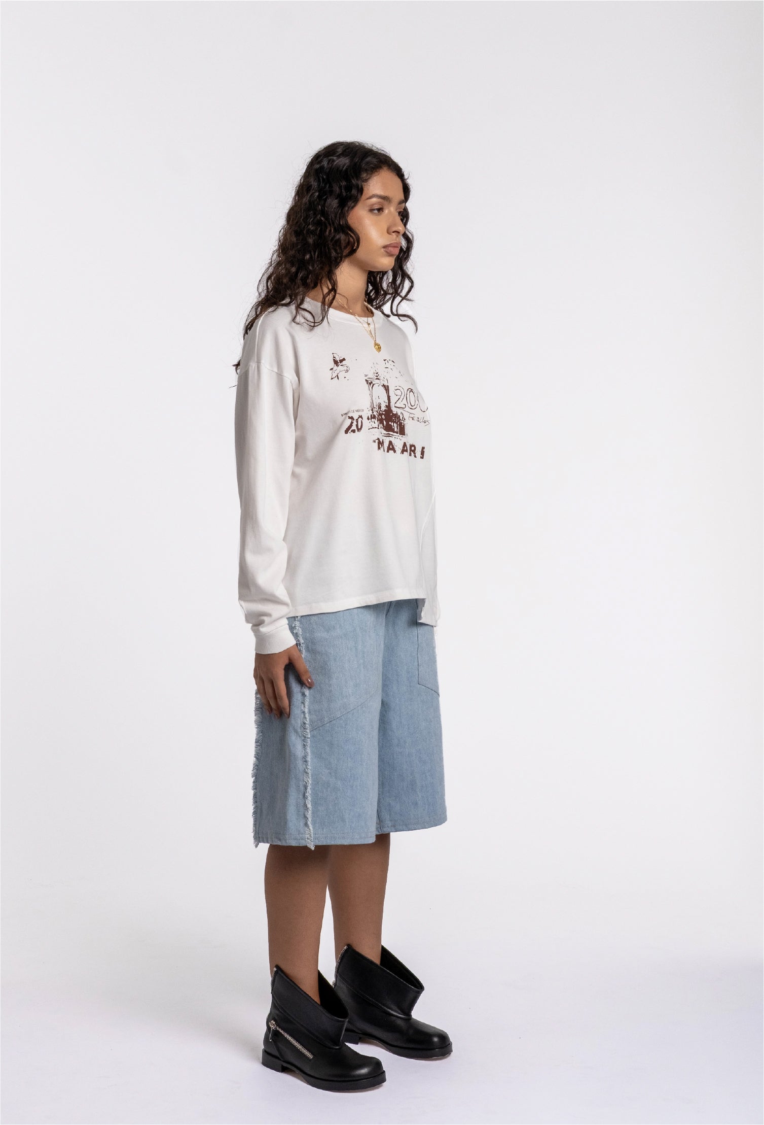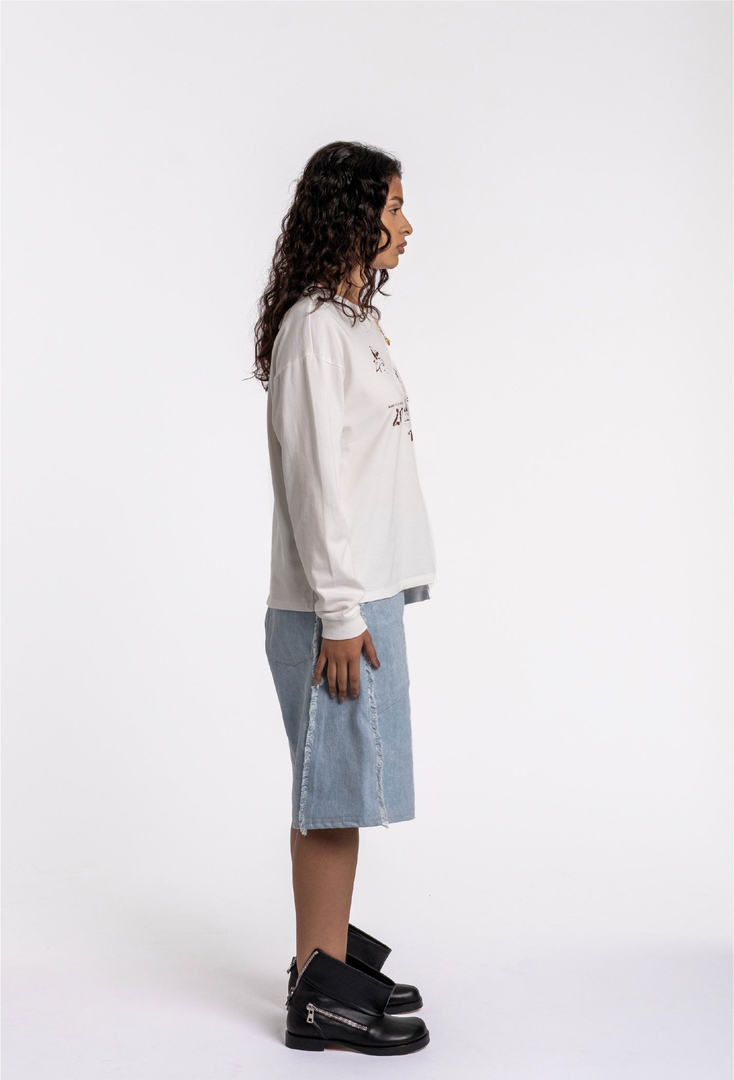 Produced in organic 265 gsm cotton, the Alure Longsleeve has an oversized boxy fit and features an extended panel detail, a front screen-printed graphic and a ribbed collar.